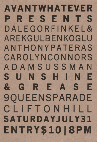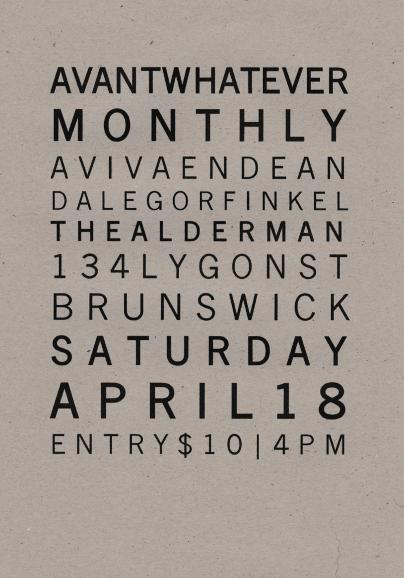 Flyer for Avantwhatever Presents… Dale Gorfinkel & Arek Gulbenkoglu