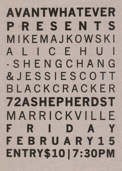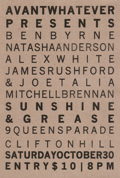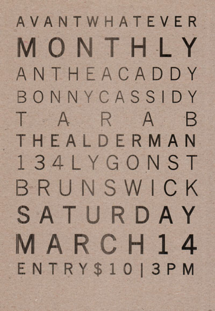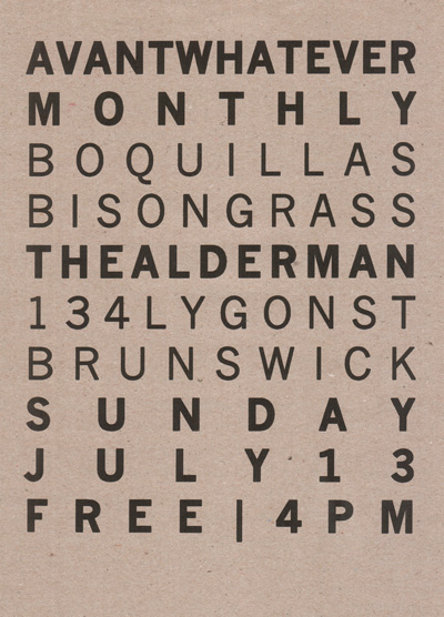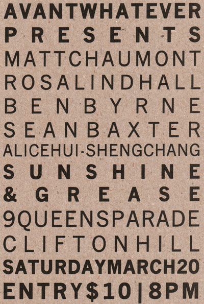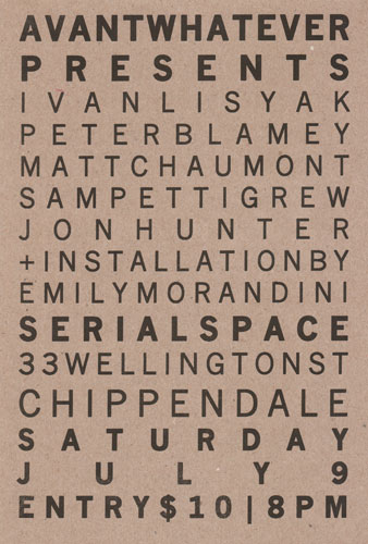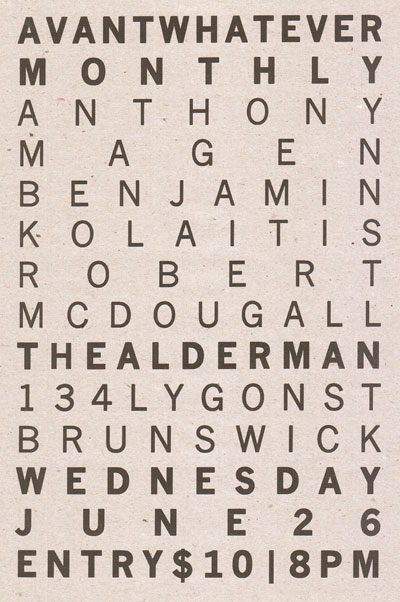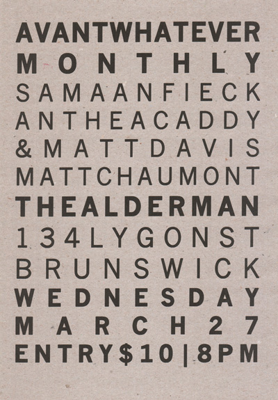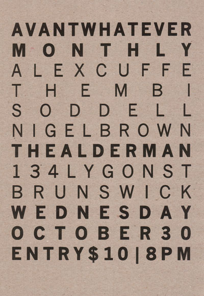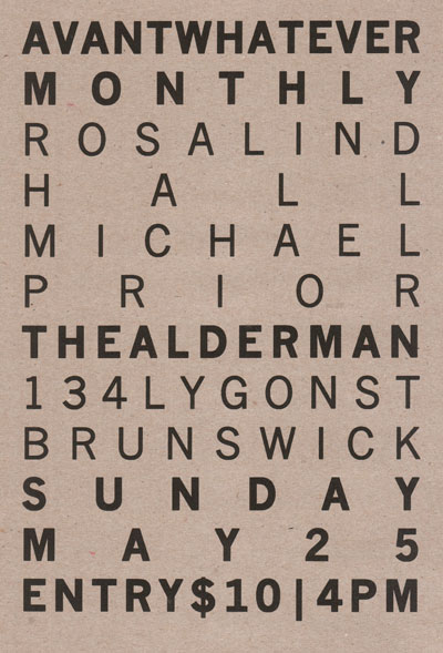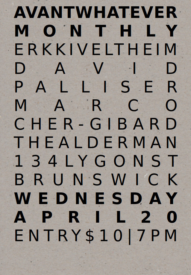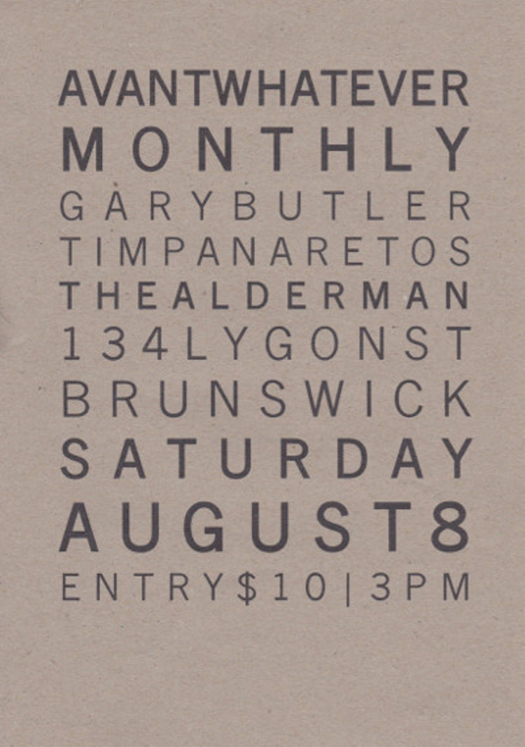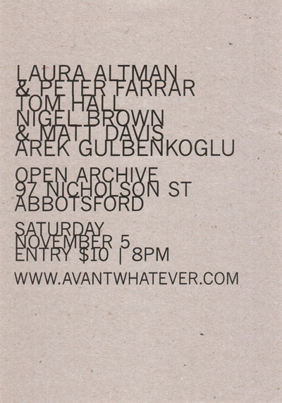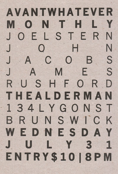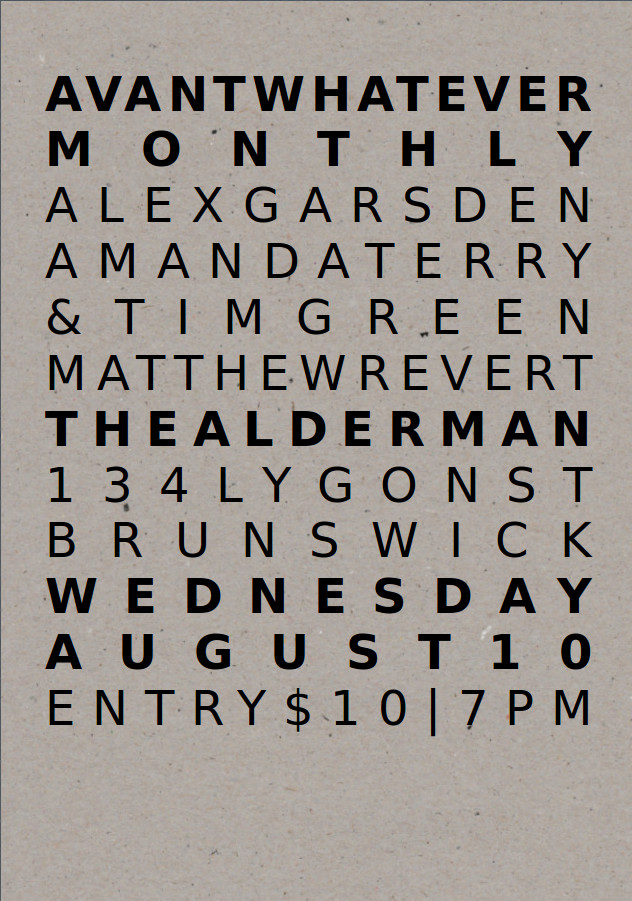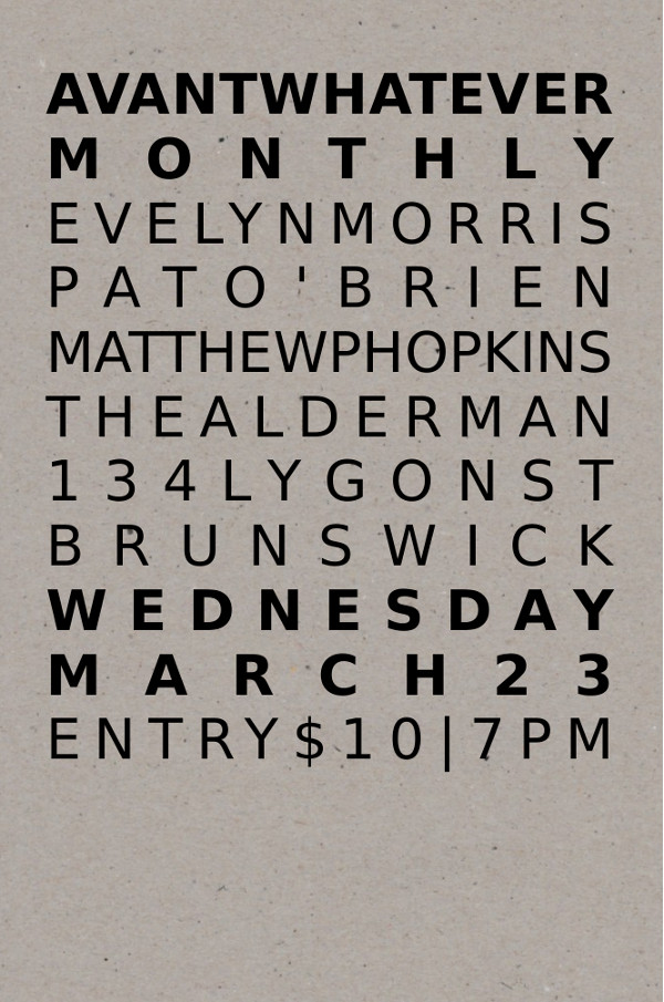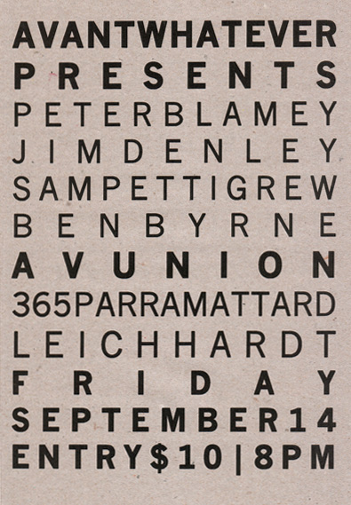 Flyer for Avantwhatever Presents… Peter Blamey, Jim Denley & Sam Pettigrew