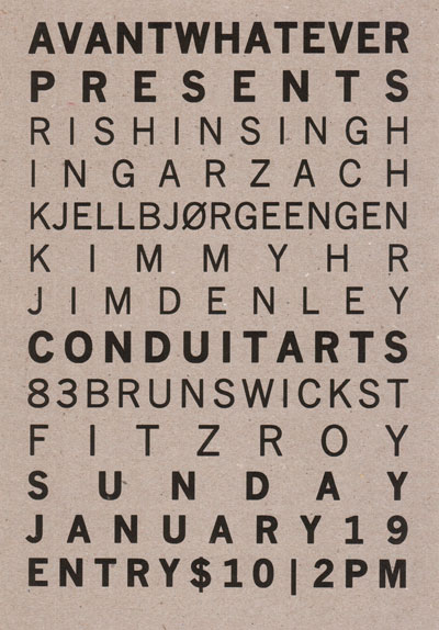 Flyer for Avantwhatever Presents Jim Denley & Sam Pettigrew