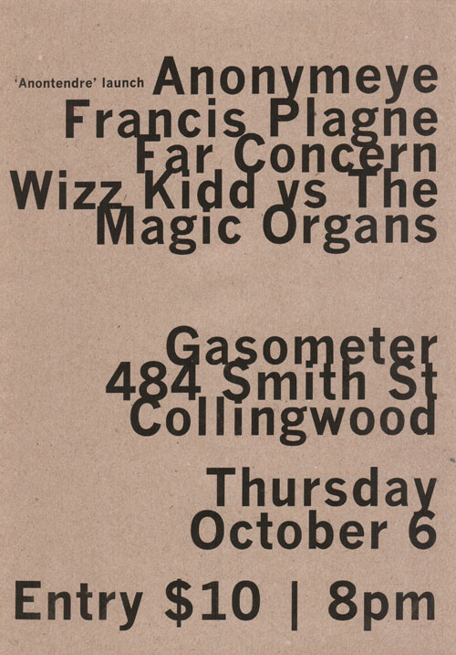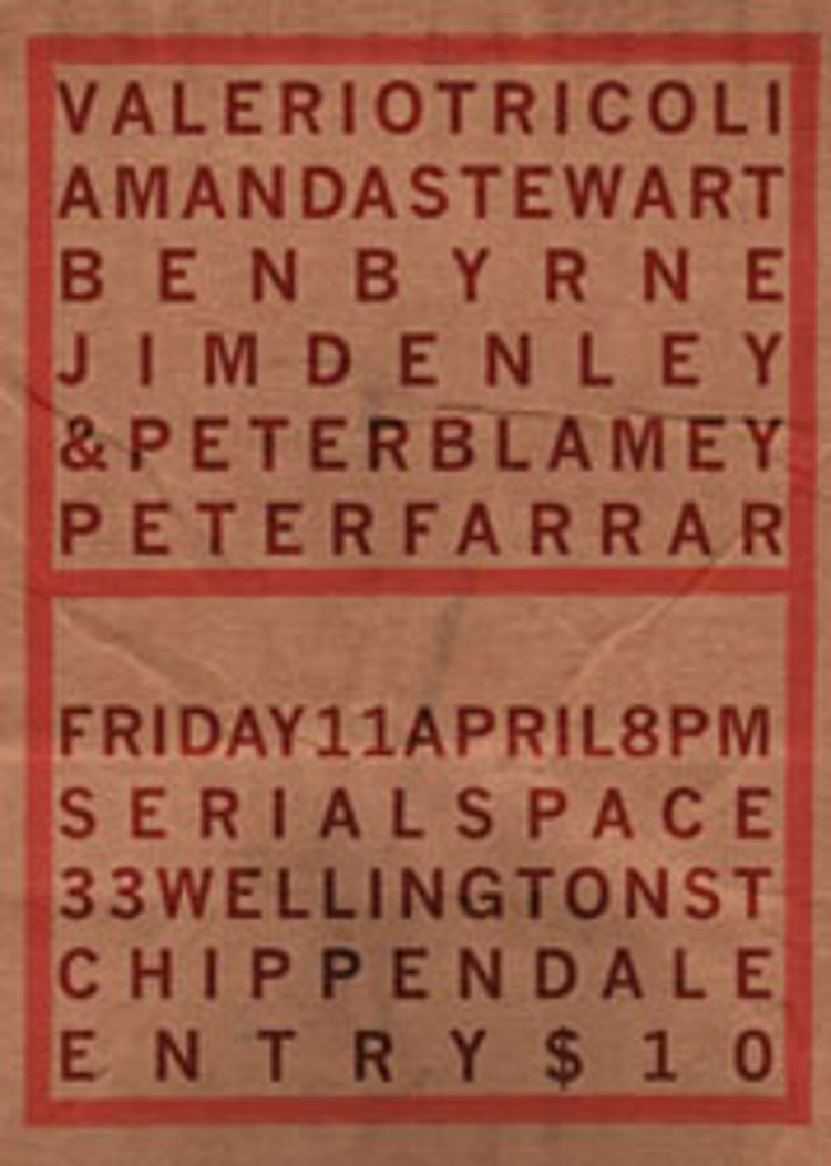 Sydney launch show for Peter Blamey’s ‘Forage’, Sam Pettigrew’s ‘Domestic Smear’ and Jim Denley’s ‘Your Breath On My Lips’.