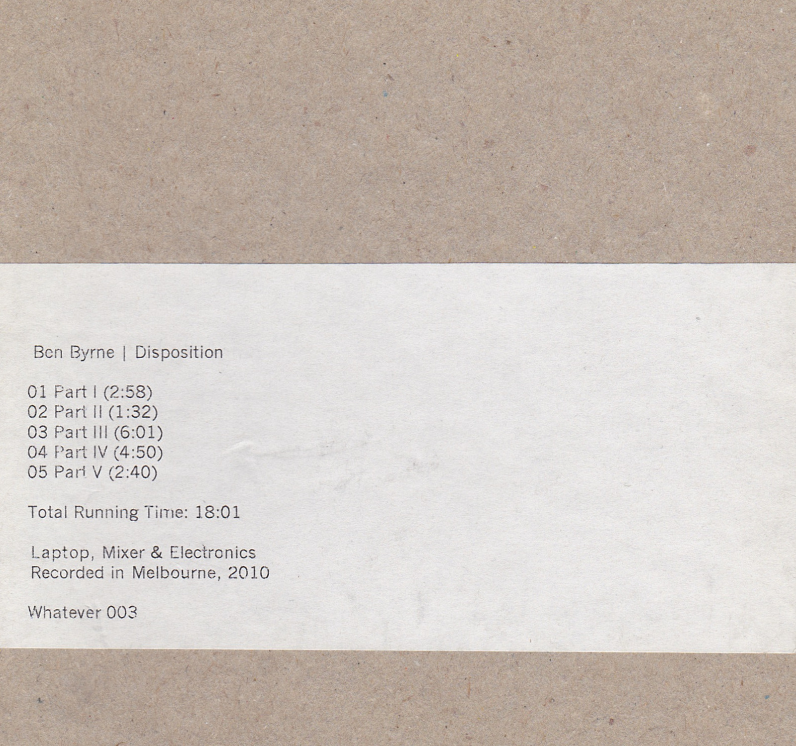 • Ben Byrne | Disposition 🔗 Oct. 2010 Release